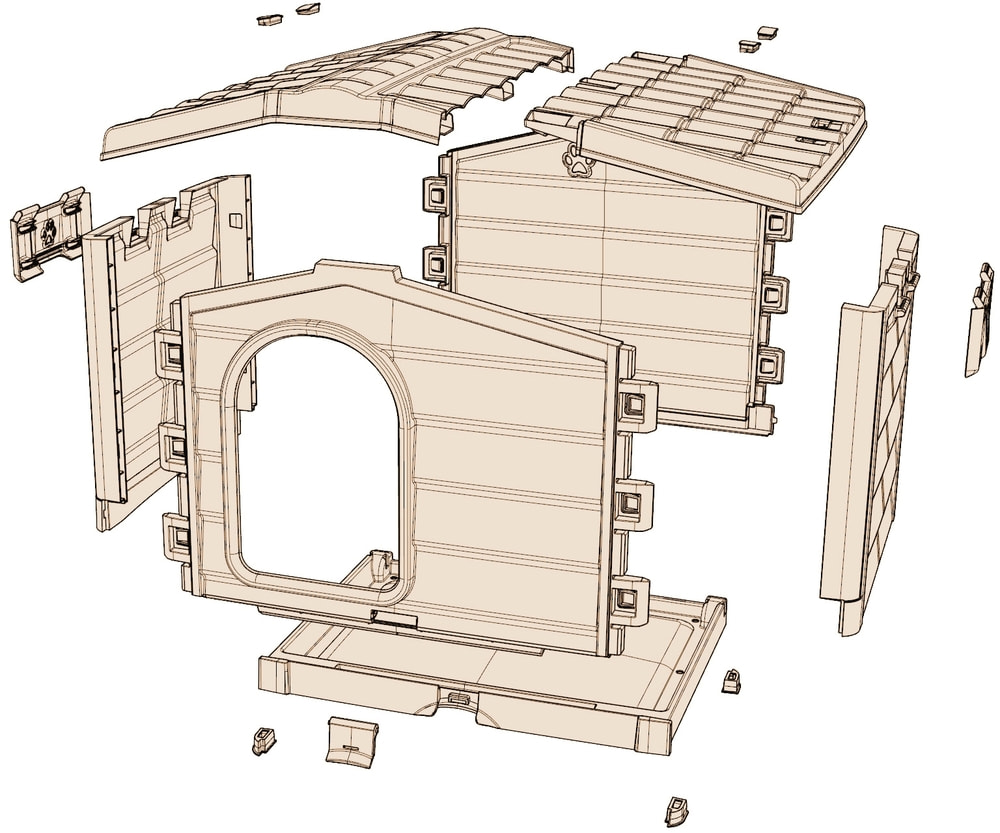Пластиковая будка для собак BUNGALOW создана для комфорта питомцев и их владельцев. Съёмное основание упрощает процесс уборки, а регулируемая крыша позволяет контролировать интенсивность вентиляции. Будку легко собирать без специальных инструментов.