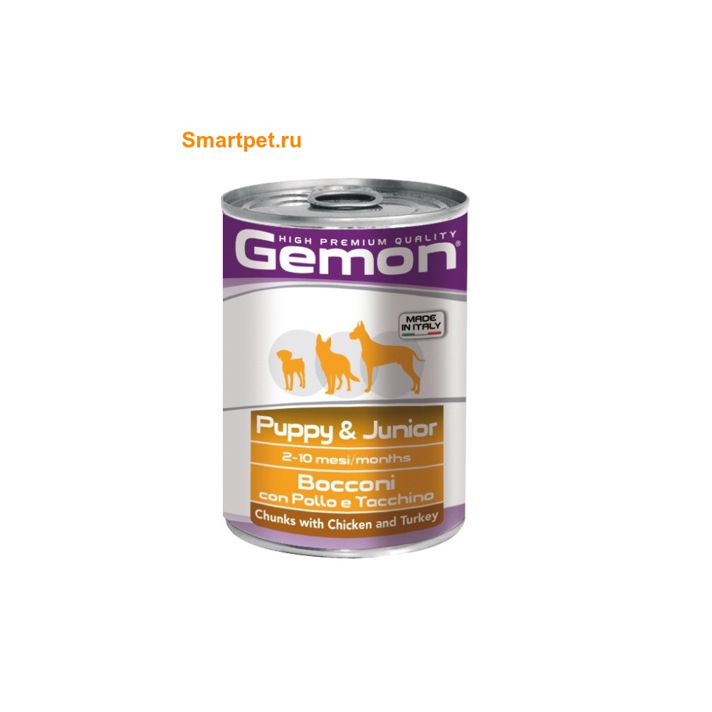 Gemon Dog консервы для щенков кусочки курицы с индейкой
