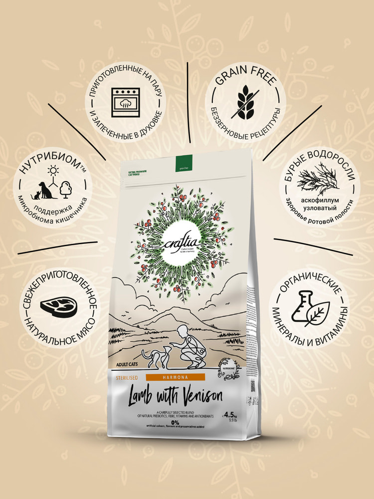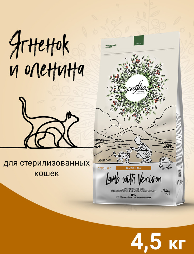 Сухой корм Craftia HARMONA для стерилизованных кошек из ягненка с олениной