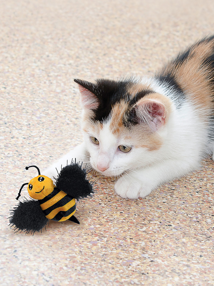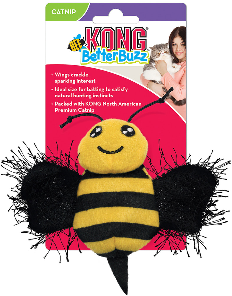KONG Better Buzz игрушка для кошек - Пчелка приятная на ощупь, и веселая в игре! Мягкое тело и трескучие крылья привлекают кошку и отвечают всем ее основным инстинктам. Антены и волоски на крыльях игрушки привлекают внимание кошки. Игрушка содержит североамериканскую кошачью мяту, что способствует увеличению интереса к игре.