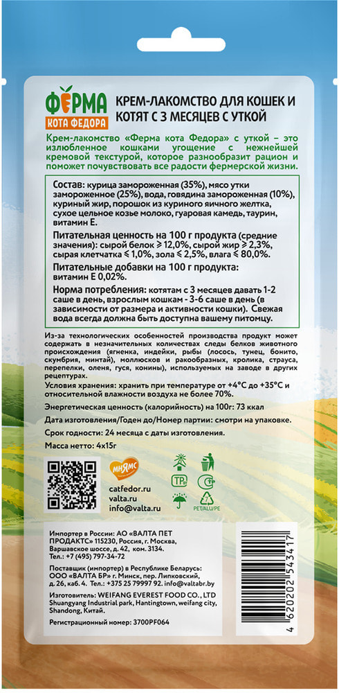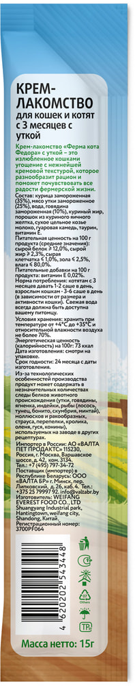 Ферма кота Фёдора Крем-лакомство для кошек и котят с уткой