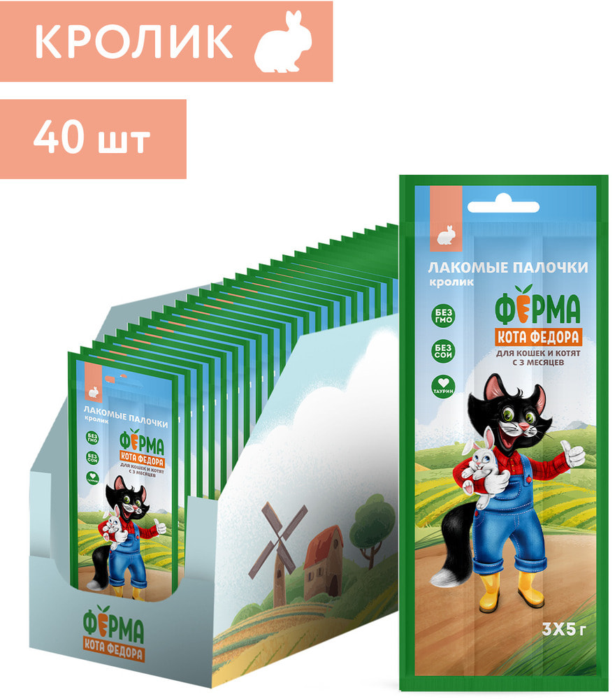 Ферма кота Фёдора Лакомство лакомые палочки для кошек и котят из кролика