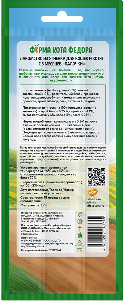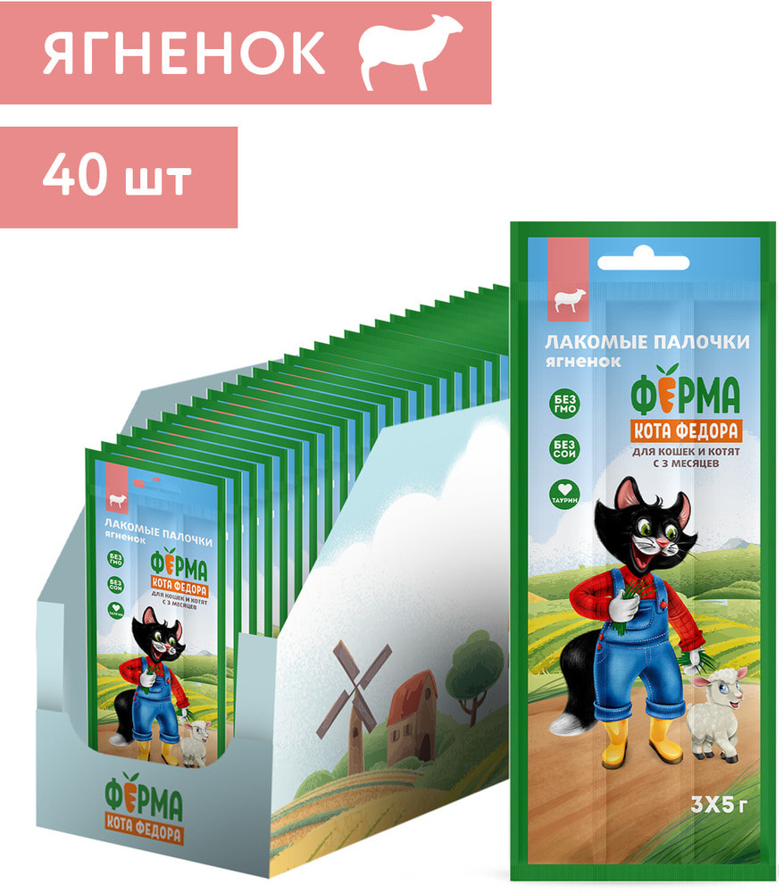 Ферма кота Фёдора Лакомство лакомые палочки для кошек и котят из ягненка