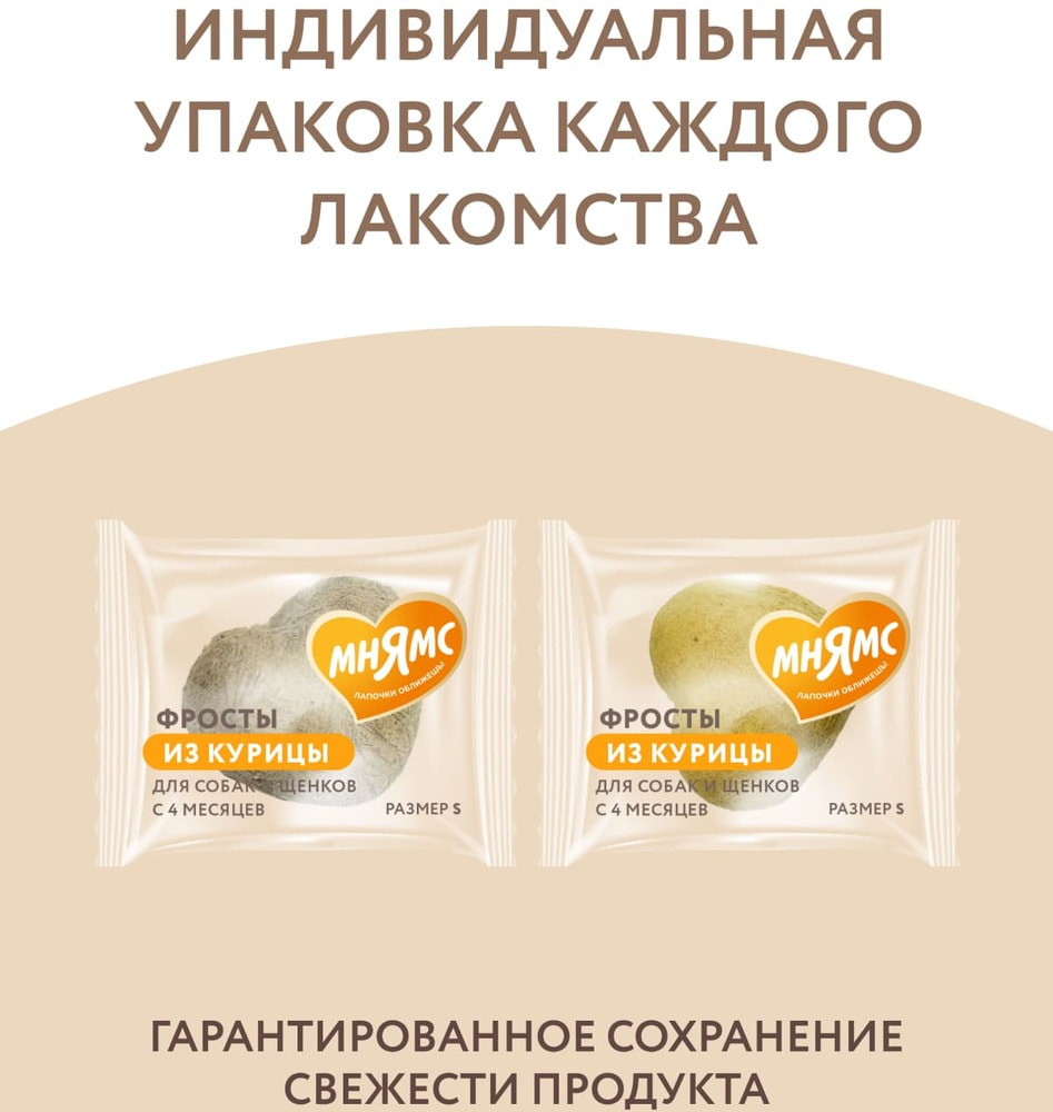Мнямс Лакомство На каждый день для собак и щенков с 4 месяцев Фросты из курицы.