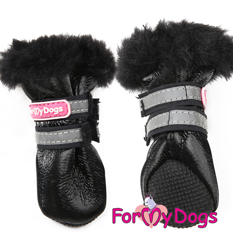 ForMyDogs Сапоги для собак зимние черные на меху, цельнокроенный чулок без швов