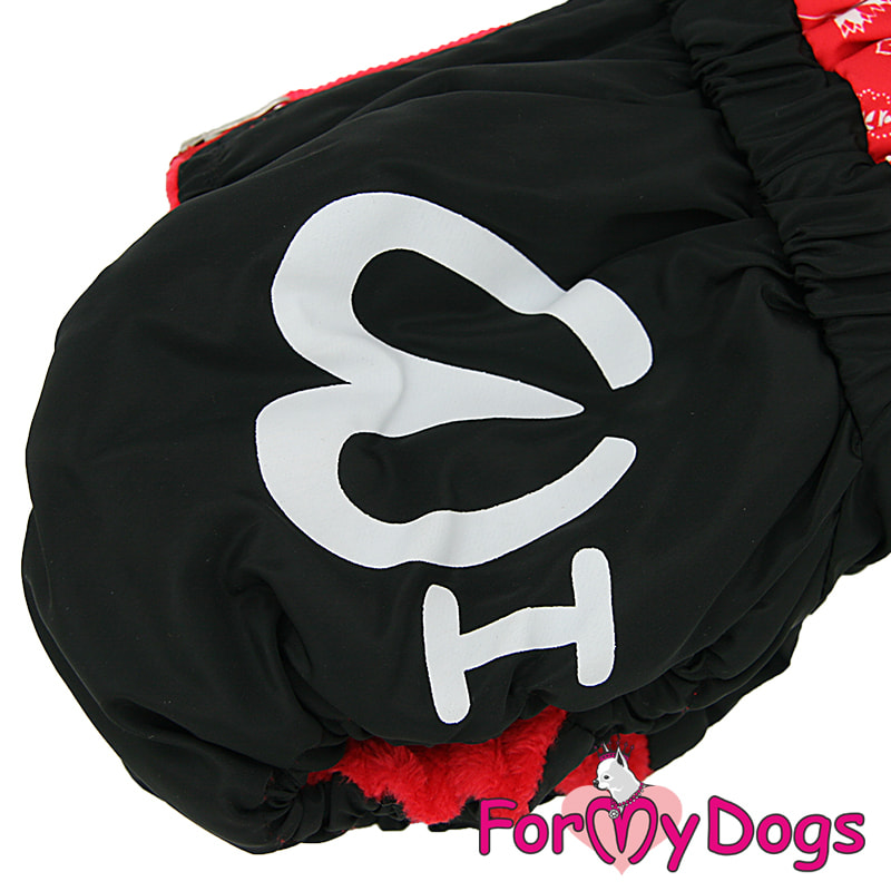 ForMyDogs Теплый комбинезон для вельш-корги черно/красный для девочек