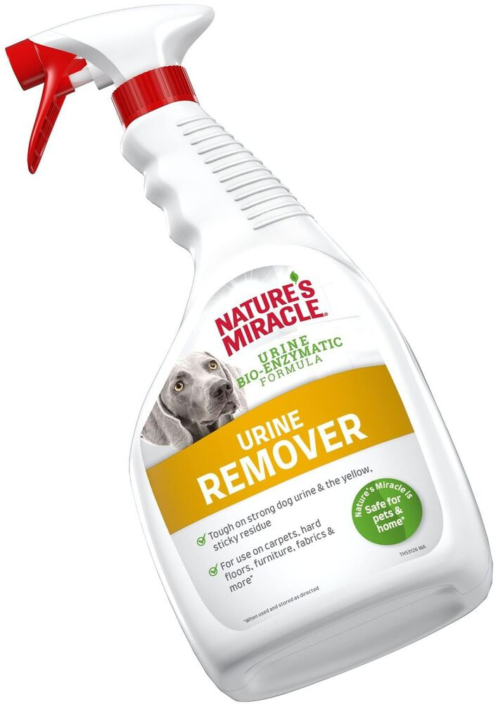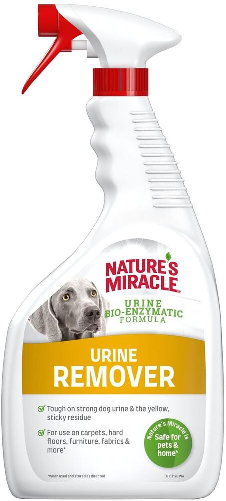 Уничтожитель пятен и запахов от мочи собак Nature’s Miracle специально разработан для устранения стойких пятен и запахов от мочи собак с ковров, мебели, твердых поверхностей, тканей, переносок и т. п. Благодаря мощной биоэнзимной формуле Уничтожитель пятен и запахов от мочи Nature’s Miracle наиболее эффективно справляется с такого рода загрязнениями. Усовершенствованная формула удаляет все следы мочи, в том числе клейкий осадок и жёлтые пятна. Средство работает даже на старых и глубоко въевшихся пятнах и запахах мочи. После обработки остается приятный аромат эфирных масел и алоэ веры, который отпугивает питомцев от обработанной поверхности.