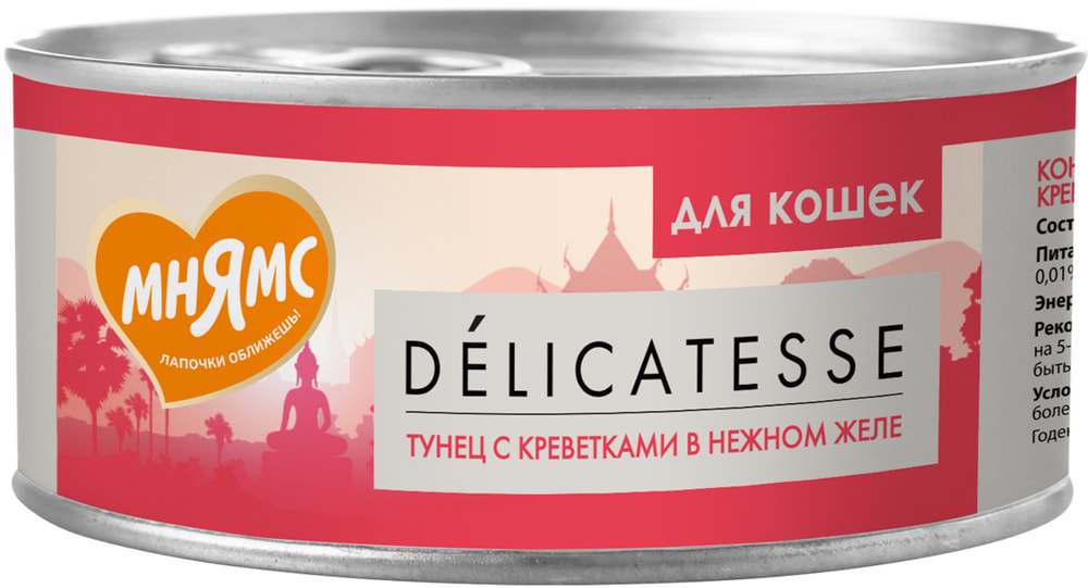 Мнямс консервы для кошек тунец с креветками в нежном желе 70 г