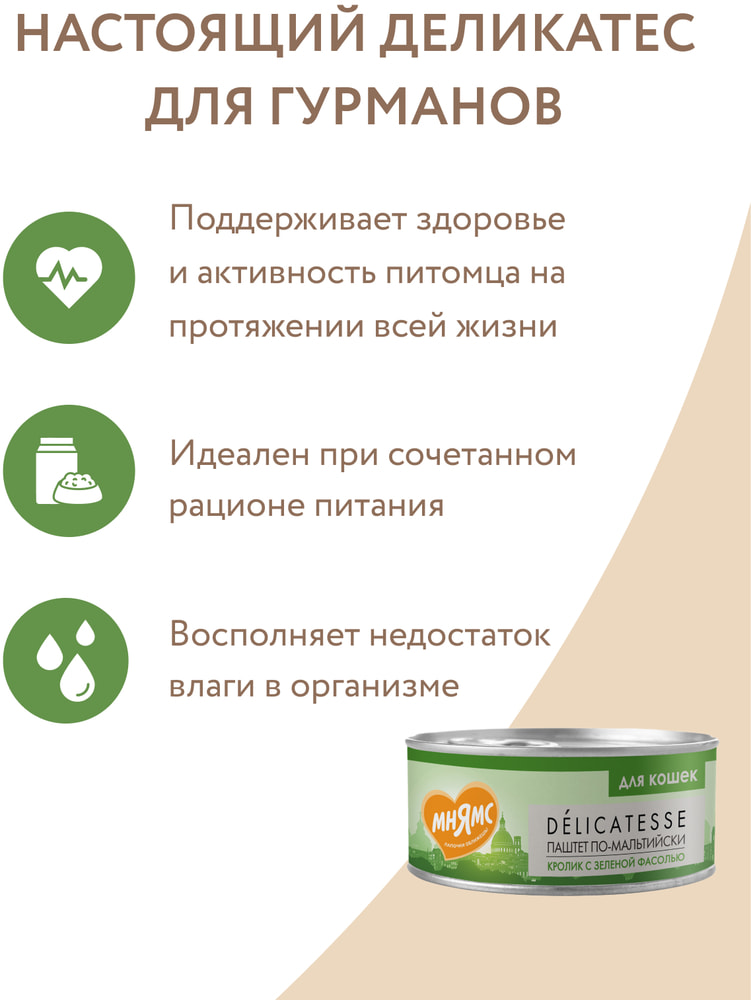 Консервы Мнямс Влажный корм Кролик с зеленой фасолью для кошек Паштет по-мальтийски