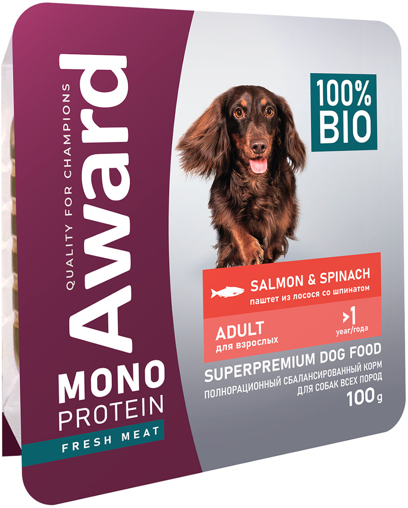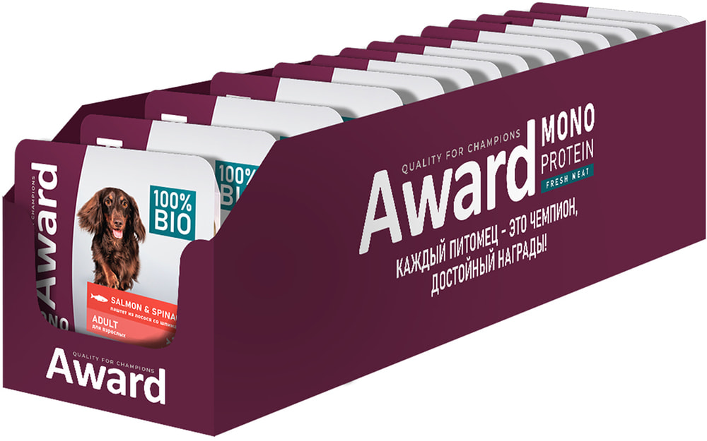 Award Влажный корм Monoprotein для взрослых собак паштет из лосося со шпинатом